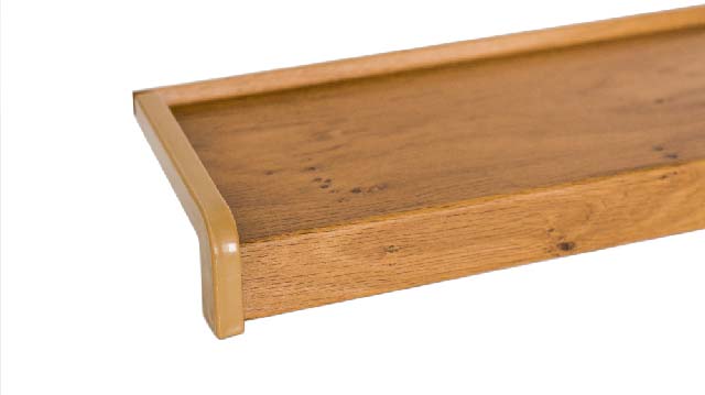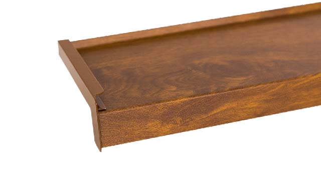 Są wykonane z blachy stalowej okleinowanej folią PVC drewnopodobną w procesie produkcji blachy w hucie. Zabezpieczeniem parapetów jest powłoka cynku chroniąca blachę stalową przed korozją oraz w/w folia drewnopodobna, która jest odporna na czynniki zewnętrzne oraz promieniowanie UV. Dodatkowo zabezpieczone są folią ochronną (polietylen). W procesie produkcyjnym dzięki odpowiedniej technologii nosek parapetu uzyskuje estetyczne zaokrąglenie.